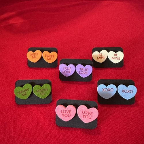 Valentine Conversation Heart Wooden Earrings
