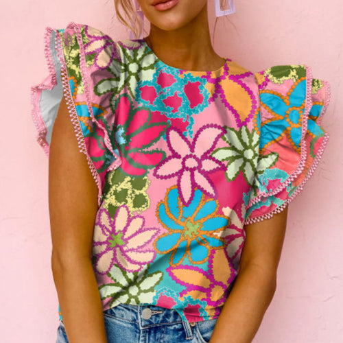 Multicolor Floral Print Ruffled Sleeve Blouse