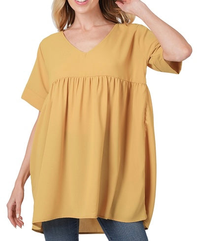 WOVEN HEAVY DOBBY EMPIRE WAIST SHIRRING TOP